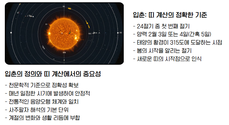 - 입춘 시간 전후로 띠가 갈리는 방식입니다.